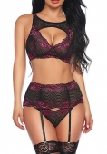 Home > Sexy Lingerie > Sexy Bralette > 3 pcs charming rose pink lace bra thongs garters set