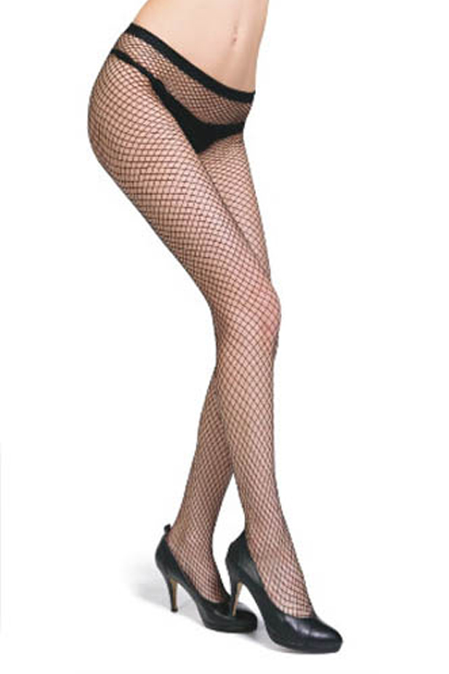 Home > Sexy Lingerie > Sexy Stockings > Black Full-Length Large Fishnet Style Stockings With Seamless Design and Solid Black Trim on Waistline