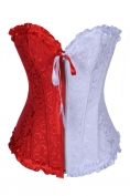 Enchanting Cute White & Red Overbust Boned Corset Top with Half Zip Up