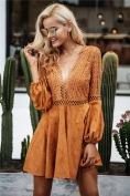 Sexy lace up v neck suede lace dress women Hollow out flare sleeve winter dress party christmas Autumn backless femme