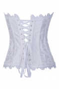 Home > Sexy Corsets > White Brocade Corset With Structured Paneling, Black Metal Clasps and White Lace Neck
