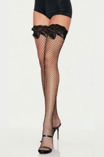 - Black Fishnet Thigh-High Stockings With Wide Black Silicon Lacy Welts With Lace-up Backs